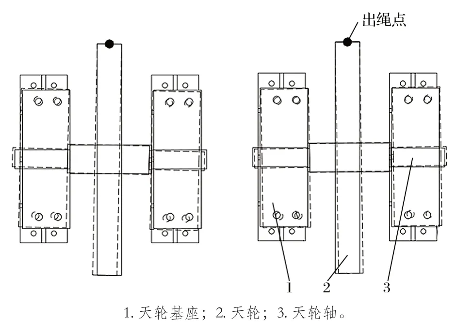 圖2 1 號天輪鋼絲繩內(nèi)外偏角調(diào)整方案示意